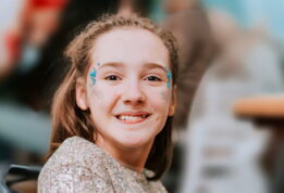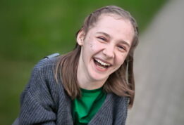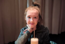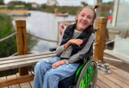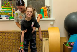 Она может сидеть, есть ложкой, пить из чашки, говорить предложениями, помогать маме готовить.